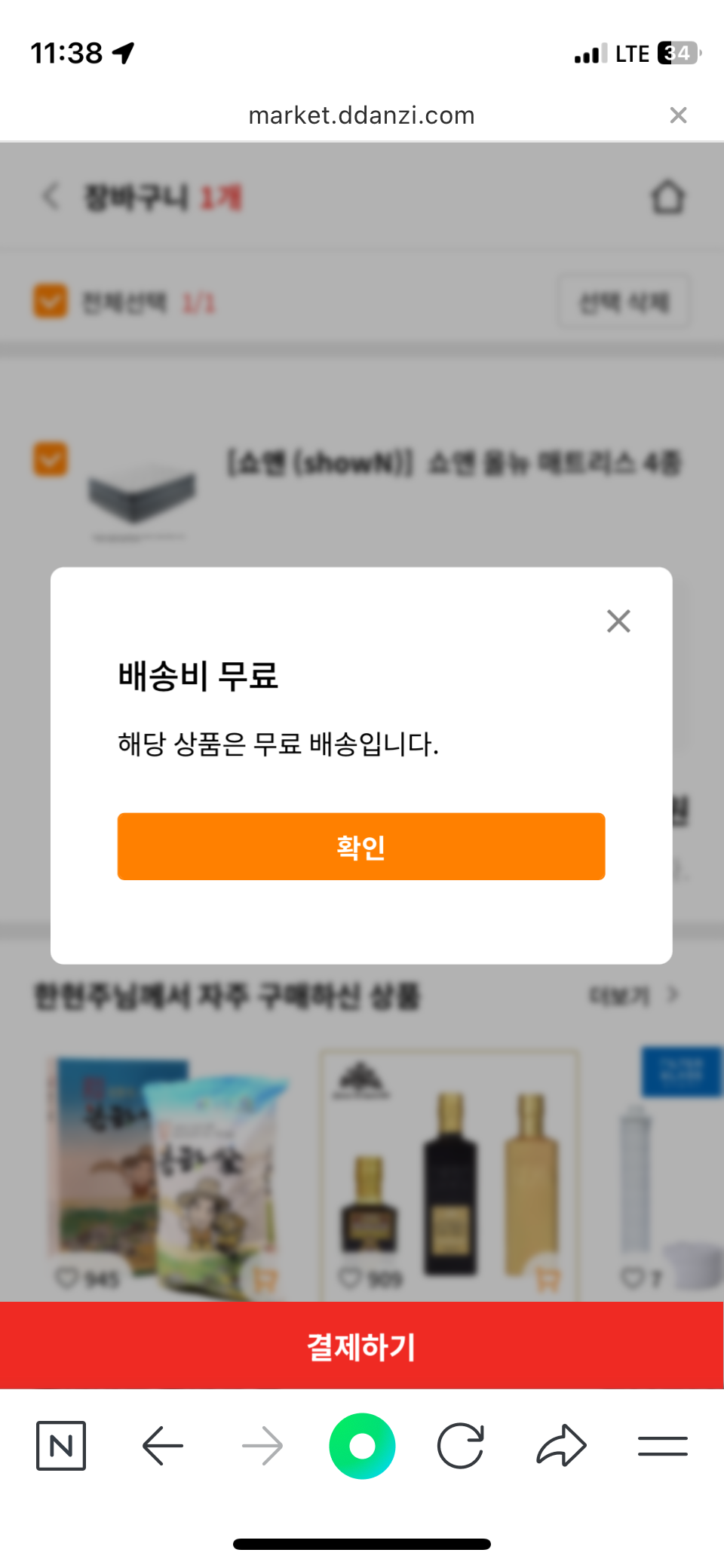 장바구니에서는 이 상품은 무료배송이라고 나와 혼돈을 일으켰네요ㅜ