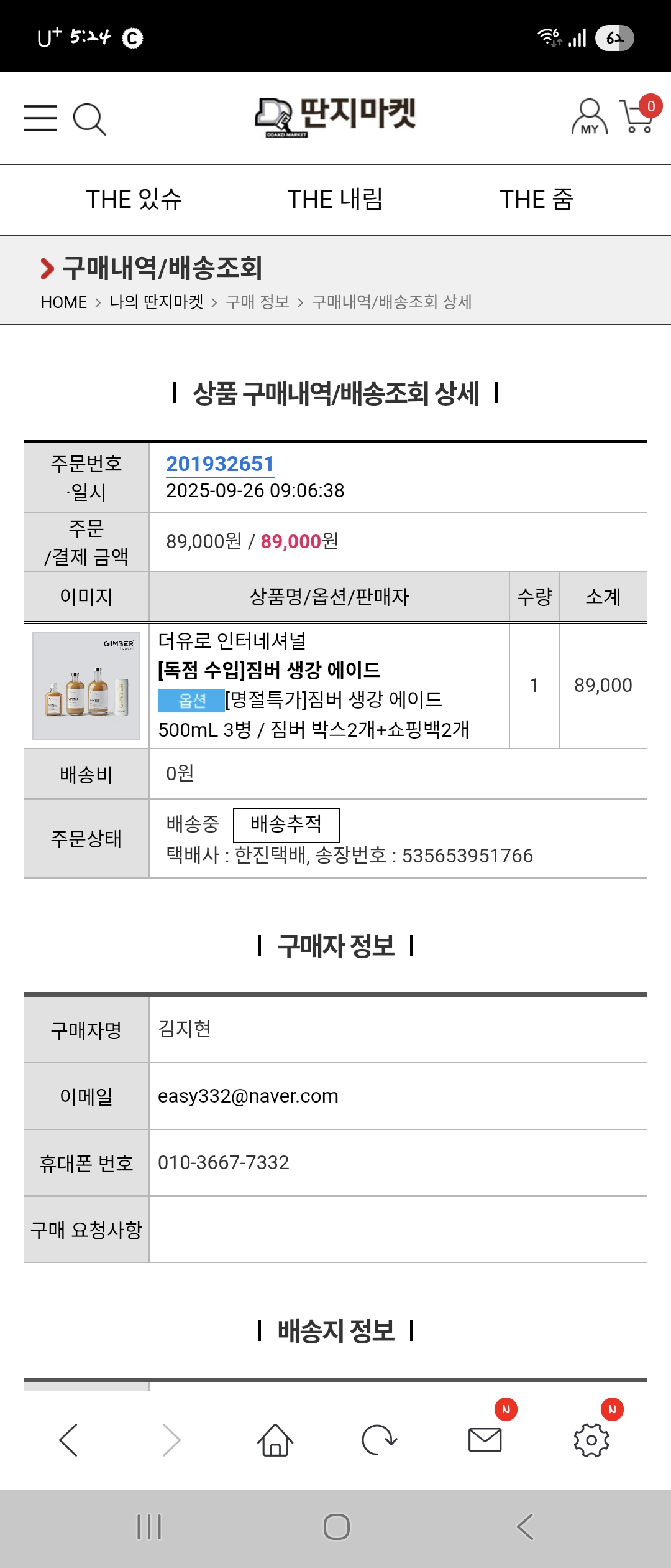 500미리 세병에 포장백2개 시켰는데 500미리 한병이 덜 왔습니다. 레시피도 한장 더 넣어주세요.답변안녕하세요 고객님, 이용에 불편을 드려 죄송합니다. 누락된 짐버 500ml 1병은 오늘 배송해 드리겠습니다. 감사합니다. 주)더유로인터내셔널드림 010-9601-5240 -