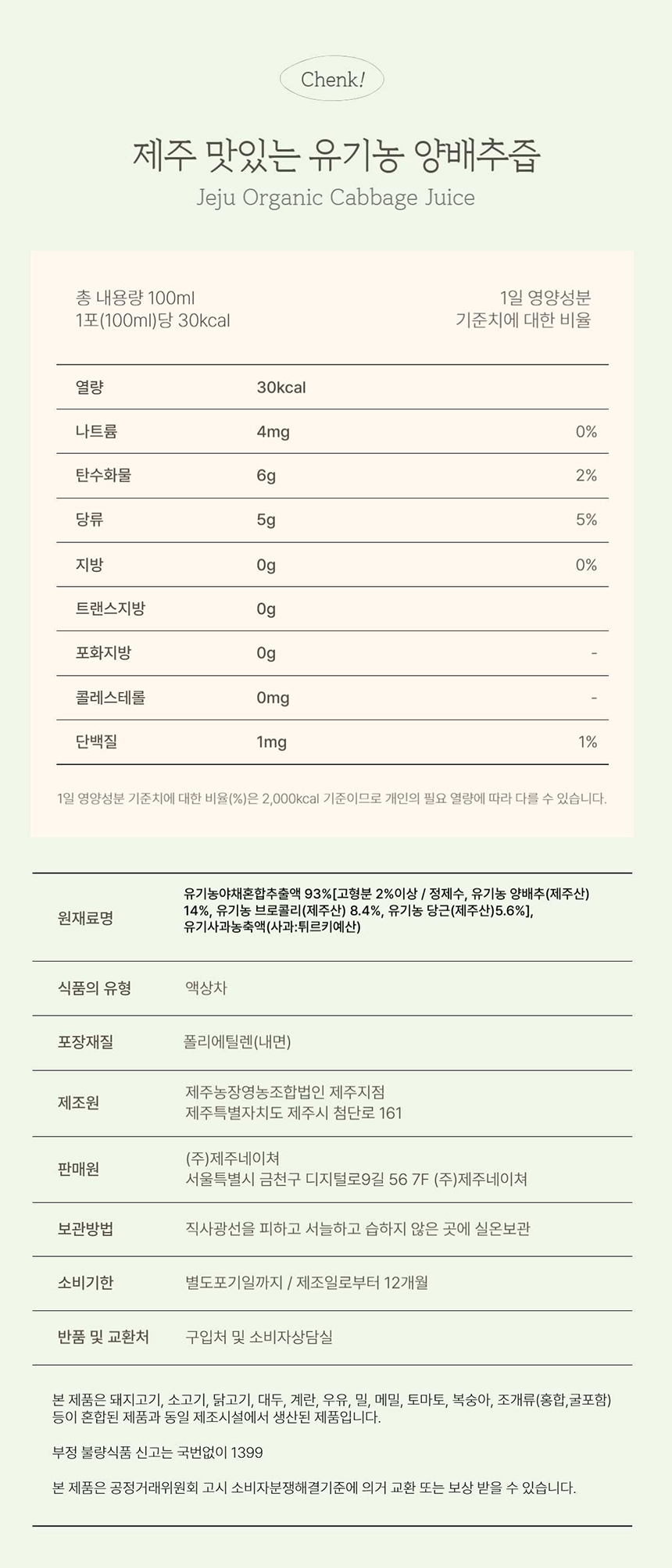 제주 네이쳐 즙은 마시기 부담스럽지는 않다. 양배추즙을 보면, 양배주 50%와 브로콜리 30% 당근 20%가 들어가 있다. 당근이 들어가 있어선지 채소의 단맛도 돌면서 부담스럽지 않게 마실 수 있었다. 레드비트도 레드비트 80%에 당근 15%, 콜라비 5%가 들어가 있다. 이 역시 맛이 부담스럽지 않아 좋았다.