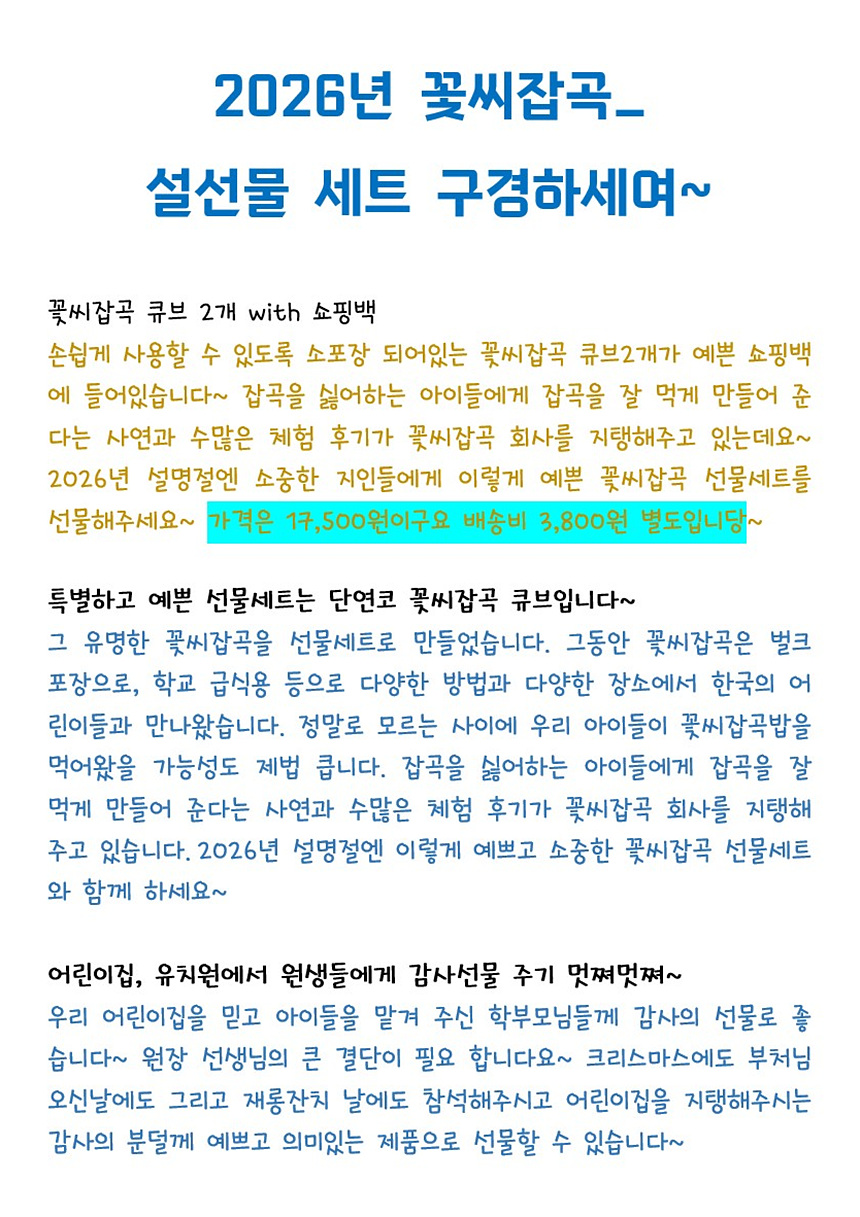 꽃씨잡곡에 들어가는 곡물들을 그냥 곡물이 아니다.