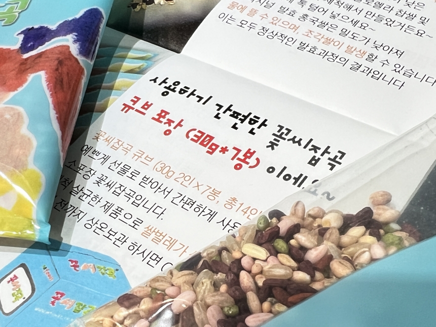 ‘내가 왜 잡곡밥보다 흰 쌀밥을 선호해왔는가’ 생각해보면 잡곡 특유의 ‘식감’이 가장 큰 이유였던 것 같다. 잡곡밥의 향이나 맛이 흰 쌀밥보다 (좋았으면 좋았지) 안 좋은 경우는 거의 보지 못했다. 단지 잡곡의 식감이 부드럽지 않고 입 안에서 거슬린다고 생각하기 때문에 잡곡밥을 꺼려왔던 거다. 해서, 꽃씨잡곡 밥을 해먹을 때도 식감에 대해서는 큰 기대를 하지 않았다. 그냥 ‘건강을 위해서 잘 만든 영양 잡곡을 먹는 거다’ 생각하며 식감이 좀 안 좋더라도 감수하고 먹으려 했는데...