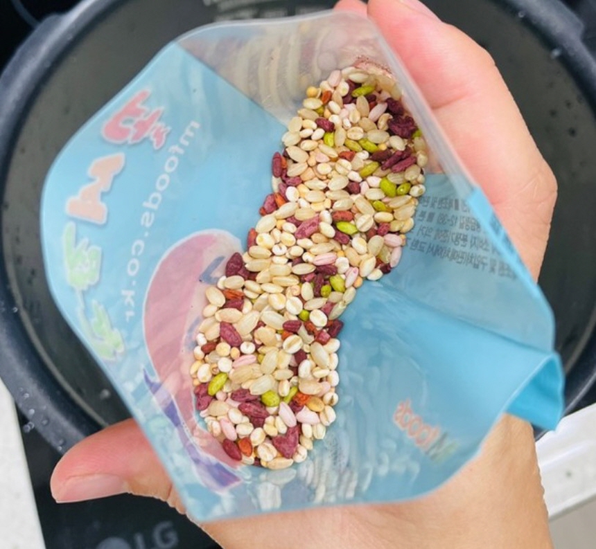 4인 가족이 10회 정도 사용할 수 있는 양의 잡곡이 들어있다. 잡곡밥 짓는다고 특별히 손이 더 갈 일도 없다. 다른 과정 없이 씻은 백미 위에 잡곡을 뿌린 채로 밥을 짓기만 하면 된단다. 포장 봉지는 지퍼백 형태로 되어있어서 필요한 만큼 덜어낸 후 지퍼를 닫아 다시 보관할 수도 있다. 포장 깔끔하고 예쁘고, 사용하기도 편리하고, 이제 먹어보는 일만 남았다.