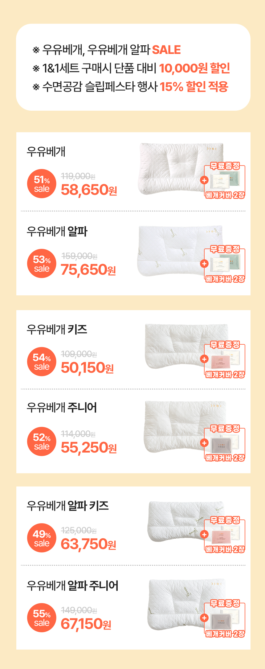 우유베개를 처음 보게 되면 굉장히 다양한 종류에 손이 가지 않을 수 있는데, 걱정하지 마시라. 하나하나 자세히 설명해 드리도록 하겠다. 그리고 종류가 많다는 걸 반대로 말하자면, “이 중에 너한테 맞는 베개 하나쯤은 있지 않겠어?”라는 것과 같으니 같이 찾아보자.