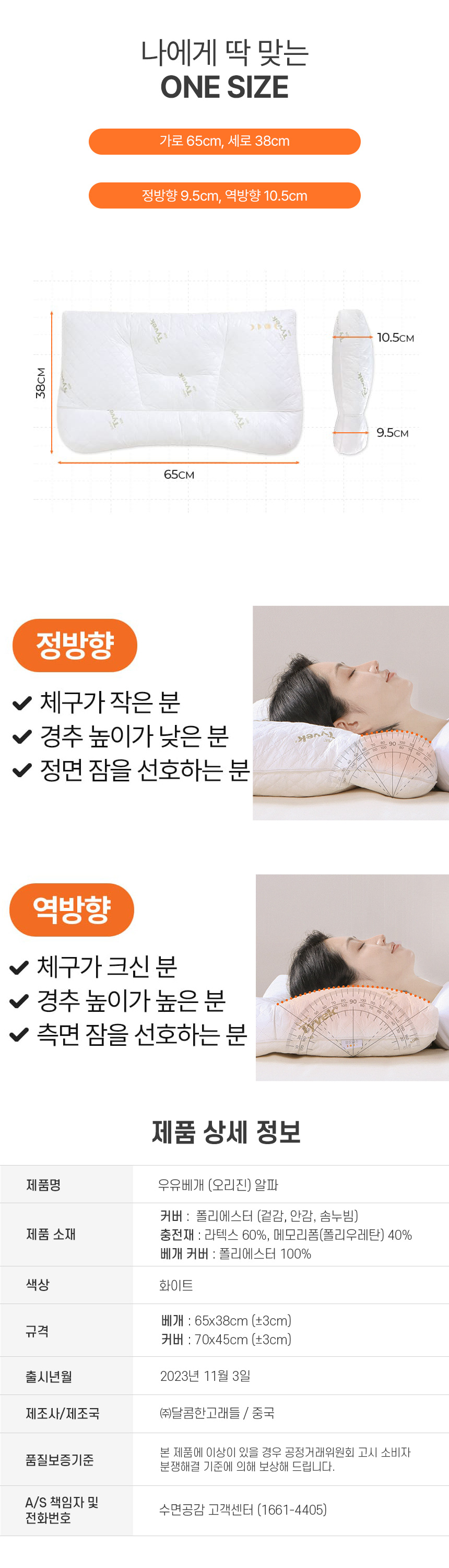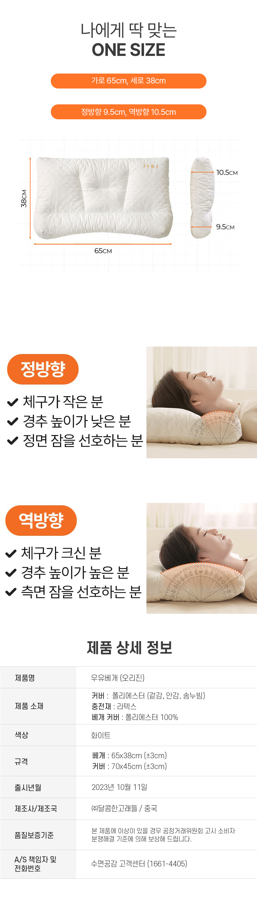 사용법도 정방향, 역방향 모두 사용 가능한 우유베개의 장점을 그대로 가지고 있다. 푹신한 경추 지지를 원하시는 분. 또는 그냥 푹신한 베개가 좋다는 분에게 추천한다.