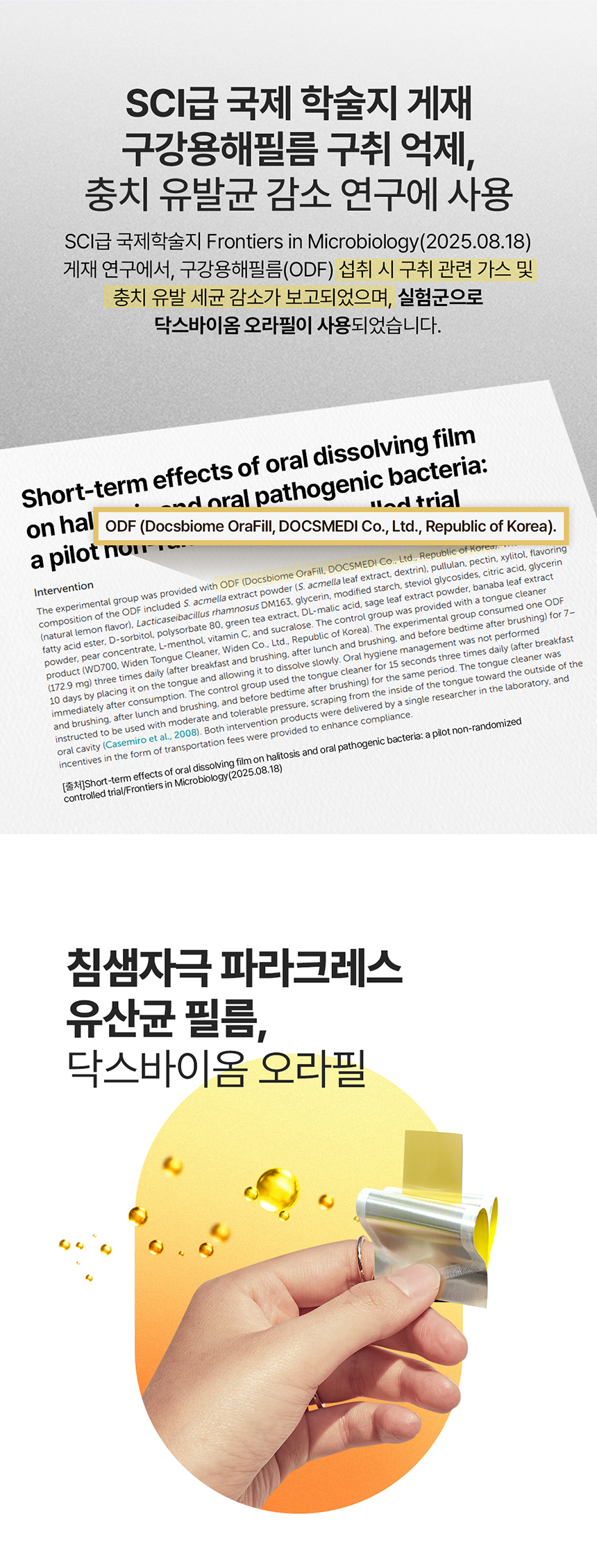 오라필은 국내에서 최초로 ODF, 즉, 구강융해필름 인증 제조 시설인 씨엘팜에서 생산된다. 이곳은 해썹, GMP 인증은 물론이고 국제 표준 인증인 ISO(9001, 14001) 인증을 받은 생산 시설이다.
