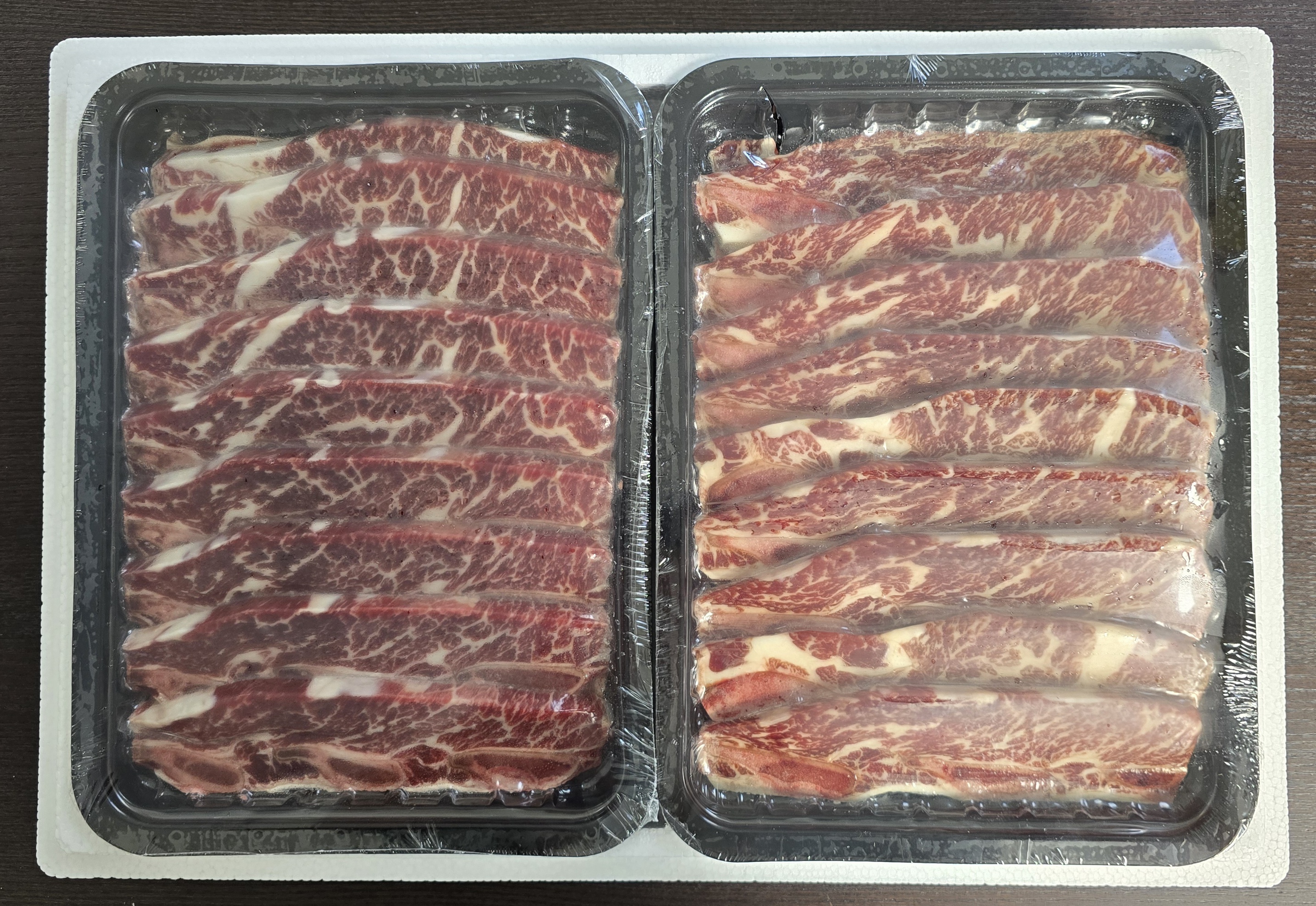 첫인상은 깔끔하게 손질된 기름과 정갈한 포장으로 만족을 하였으며, 받자마자 핏물 제거 없이 생고기로 구워서 소금에 살짝 찍어서 먹어봤는데 적당한 지방과 쫄깃한 육질이 마음에 들었다. LA 갈비 양념 후 구워 먹으면 더욱더 훌륭할 것으로 생각된다.