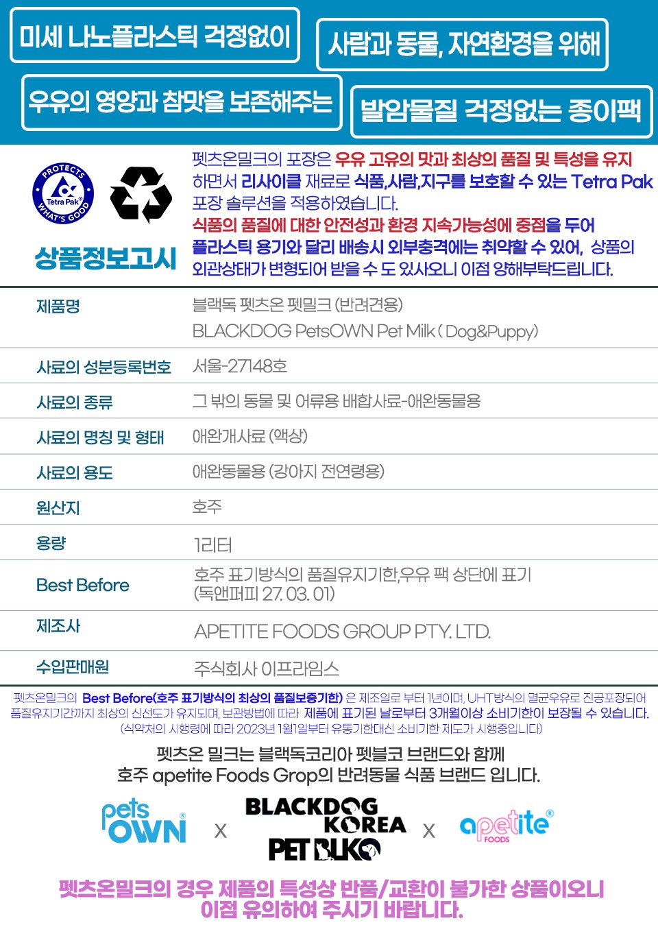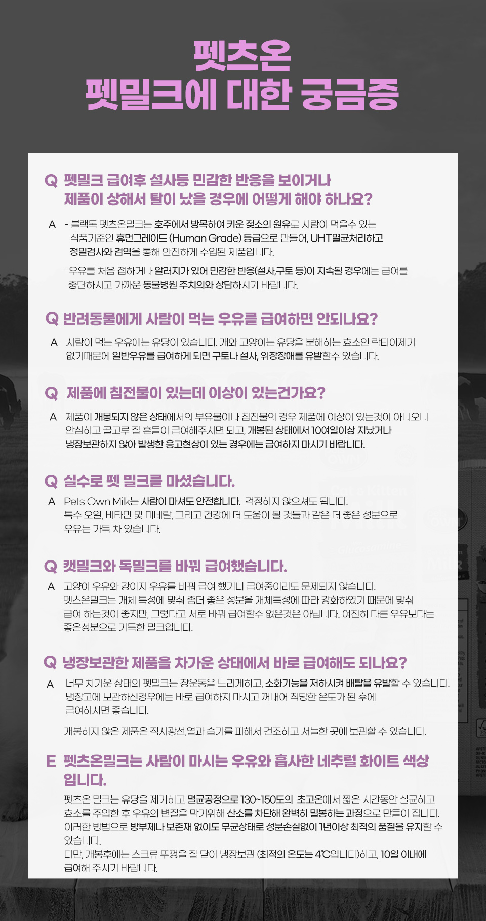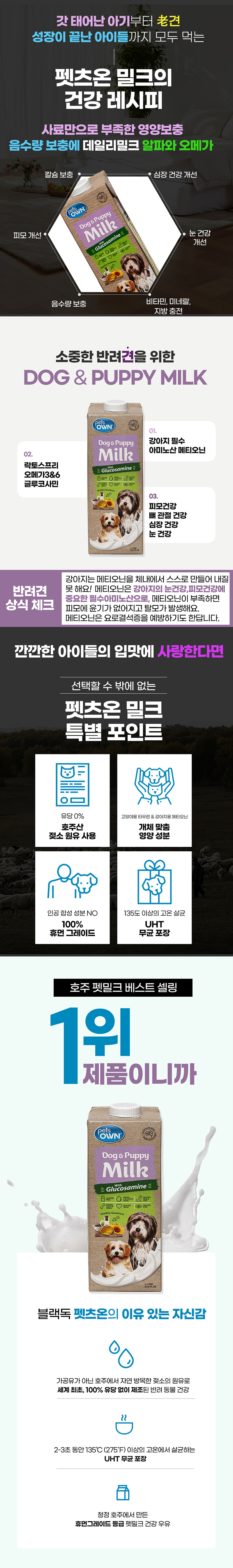 내 가족이 된 아이들에게 아무거나 먹이고 싶지 않은 마음을 담아 만든 펫밀크. 질 좋은 우유를 찾고 계신 분께 추천드린다.