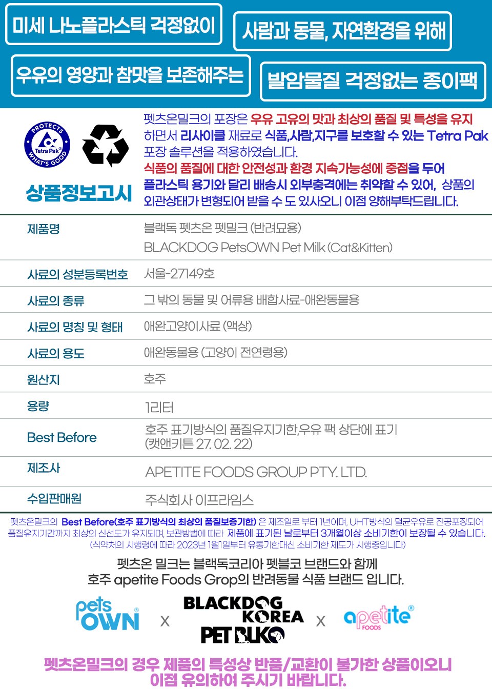 블랙독코리아 펫츠온 캣앤키튼 펫밀크 메인이미지