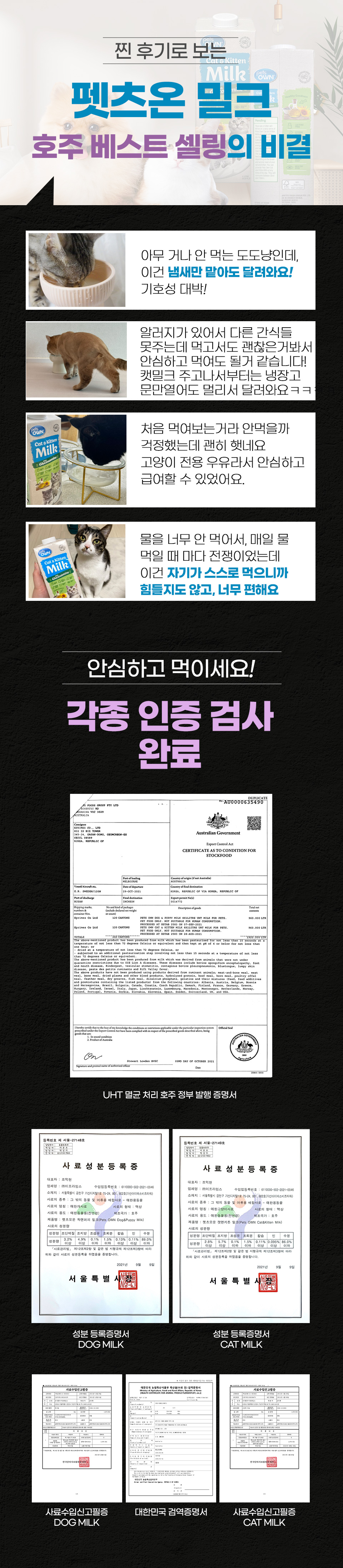 상품명 블랙독코리아 펫츠온 캣앤키튼 펫밀크