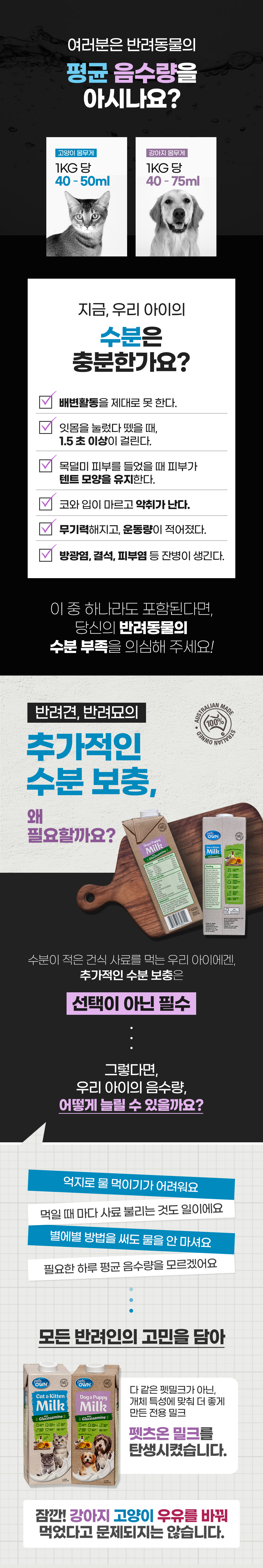 제품설명 펫밀크 하나로 영양보충과 음수량 보충을 한번에