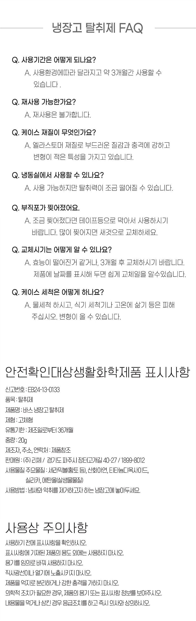 제품설명 BAS의 냉장고 탈취제