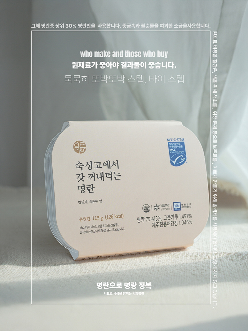맛도 깔끔, 생산 과정도 깔끔한 덕화명란. 제대로 된 명란 구하고 싶으신 분들께 제대로 추천드린다.