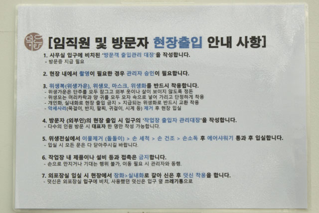 덕화 명란의 작은 박물관 탐방이 끝난 후 본격적인 제조 과정을 취재하기 위해 위생복으로 갈아입고 공장 안으로 들어갈 준비를 했다.