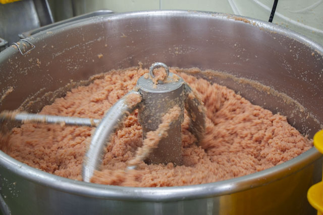첫 번째 과정은 자동으로 움직이는 통 속에 명란과 소금을 넣고 섞는 작업이다.
