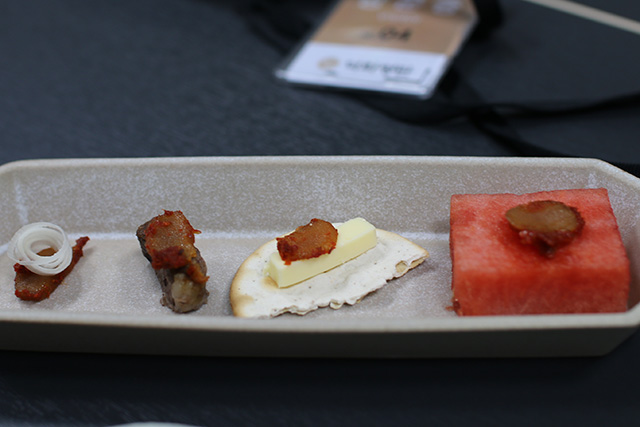 안내에 따라 왼쪽부터 파, 양고기, 버터, 수박을 곁들인 순서대로 시식했다.