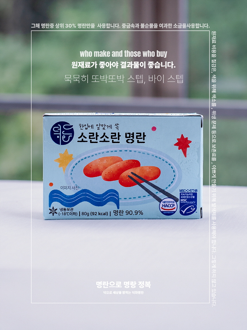 맛도 깔끔, 생산 과정도 깔끔한 덕화명란. 제대로 된 명란 구하고 싶으신 분들께 제대로 추천드린다.