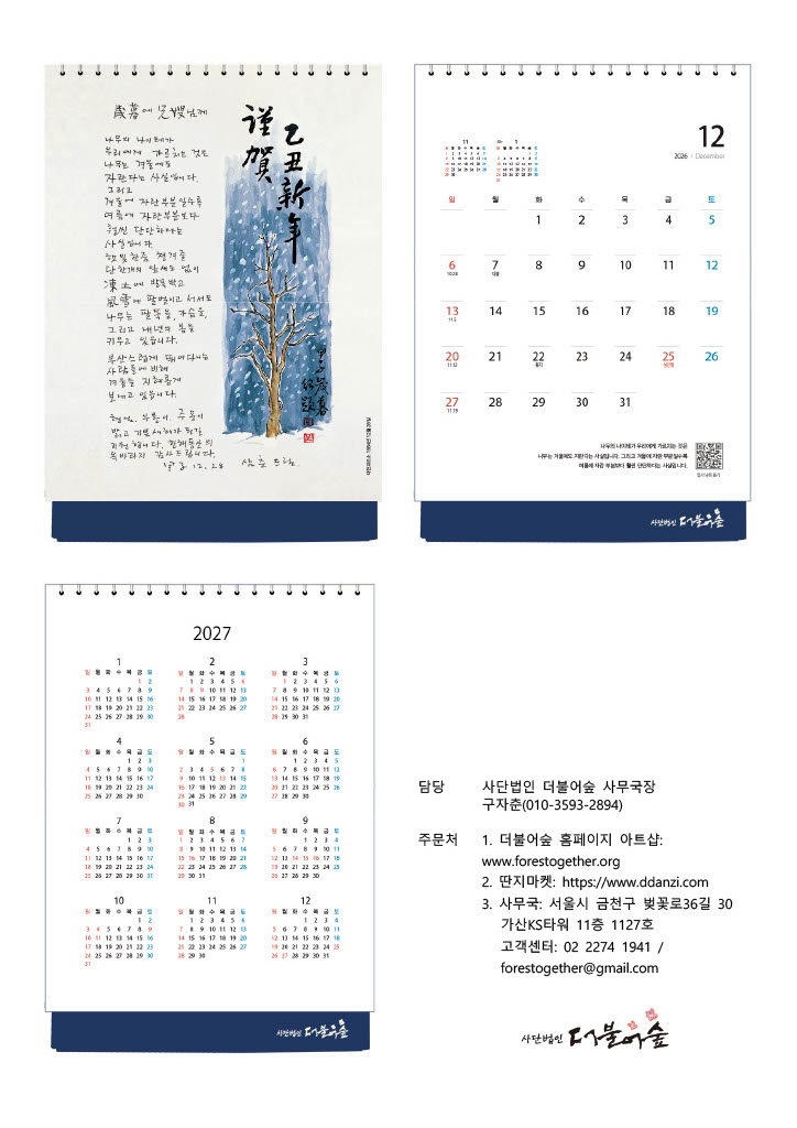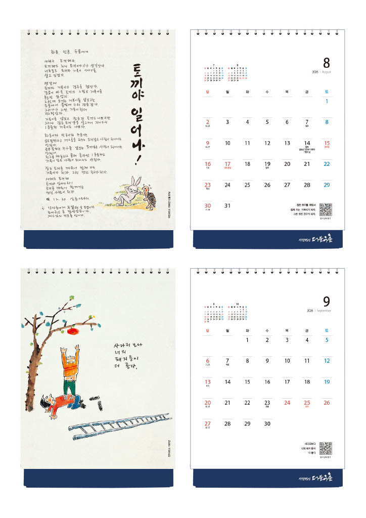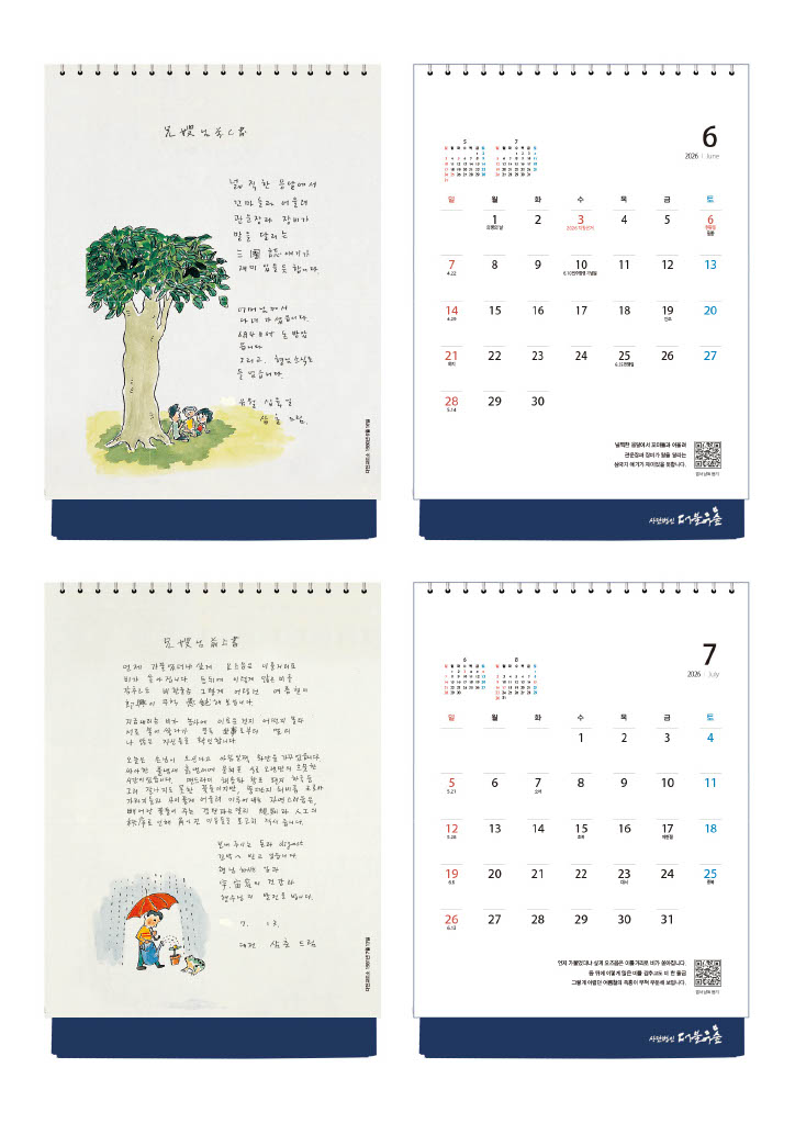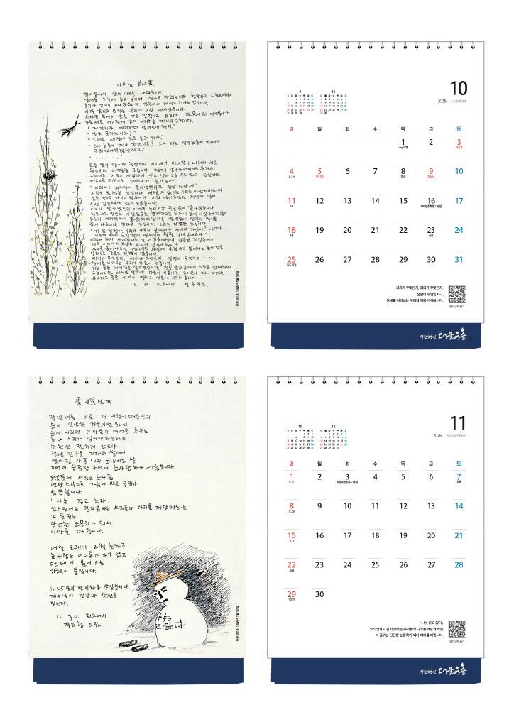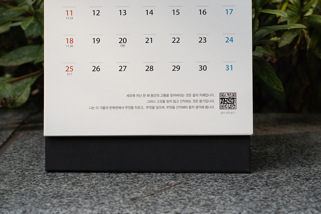 또한 달력에 있는 큐알 코드를 찍으면 엽서 원문을 아름다운 목소리로 들을 수 있도록 준비했다.