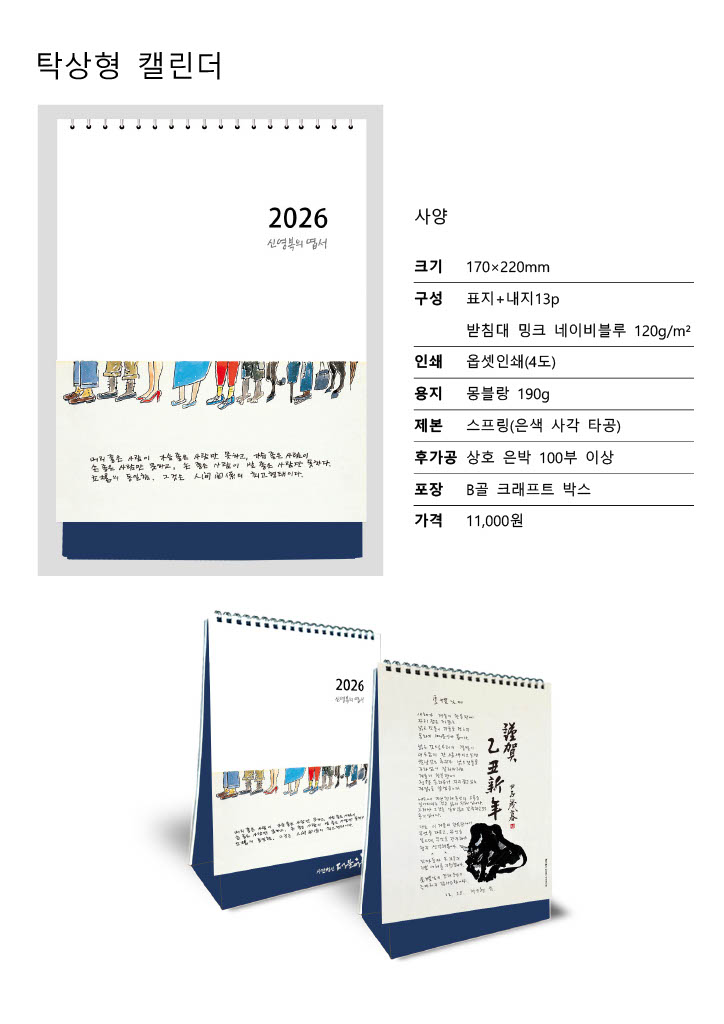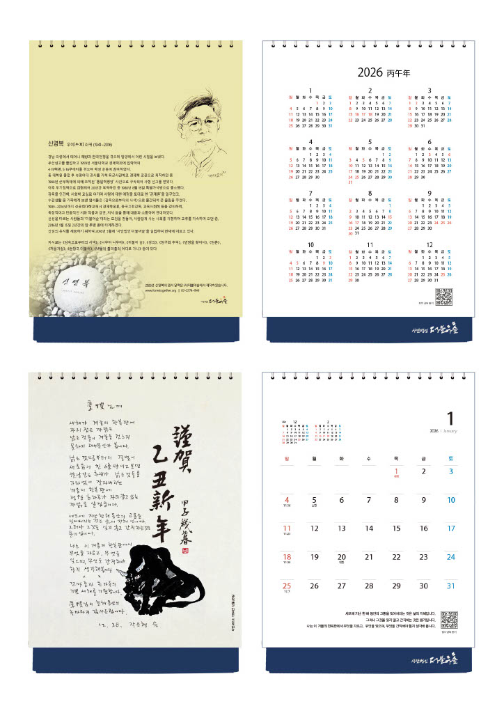 2026 신영복의 서화 달력(왼쪽)/ 신영복의 엽서 달력(오른쪽)
