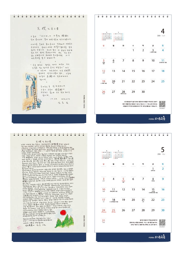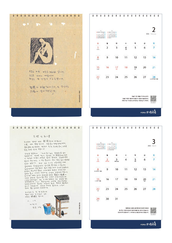 이번 2026 탁상 달력은 전에 없던 <감옥으로부터의 사색> 엽서 원본을 담았기에 두 개를 다 가지면 더 좋지 않을까.