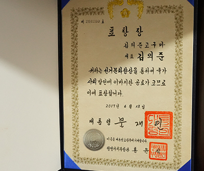 김어준.. 아니 김의준고구마를 생산하는 김영후 대표와 간단한 인터뷰를 진행하기 위해 둘러본 미팅룸에 놓인 다양한 상패들이 먼저 눈에 들어왔다.