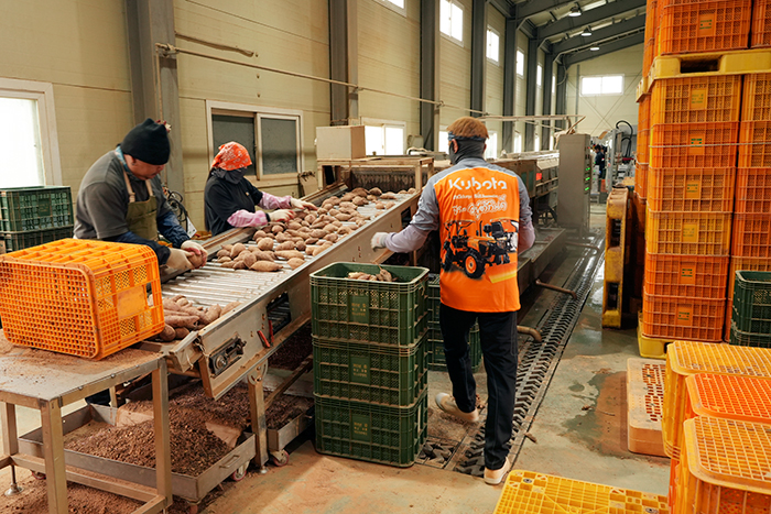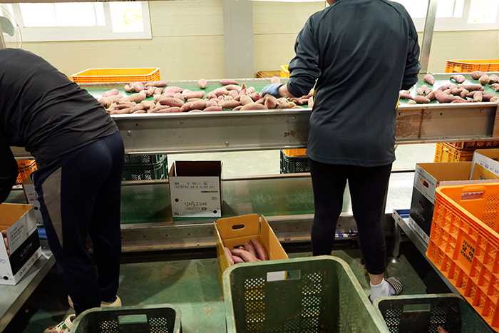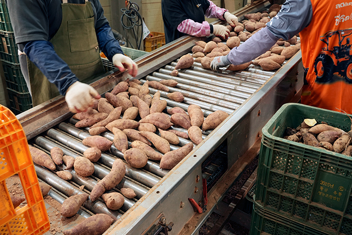 세척 후 건조된 고구마들은 사이즈에 맞게 선별 작업을 진행