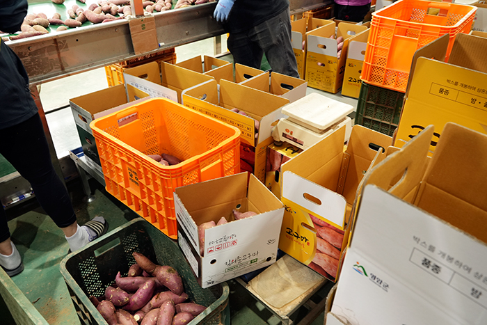 해당 선별과정에서도 역시 상품 가치가 떨어지는 불량 고구마들은 매의 눈으로 골라내고 있다.