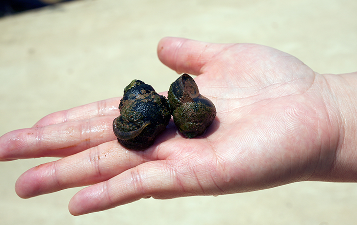 비닐하우스 옆 농수로에 살고 있는 커다란 논우렁이가 나를 반기네..