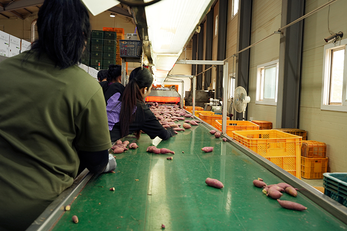 일정한 시간을 두고 맛있게 숙성된 고구마들은 해당 작업장으로 이동되어 엄격한 매의 눈으로 불량품과 상품 분류 작업이 진행 된다.