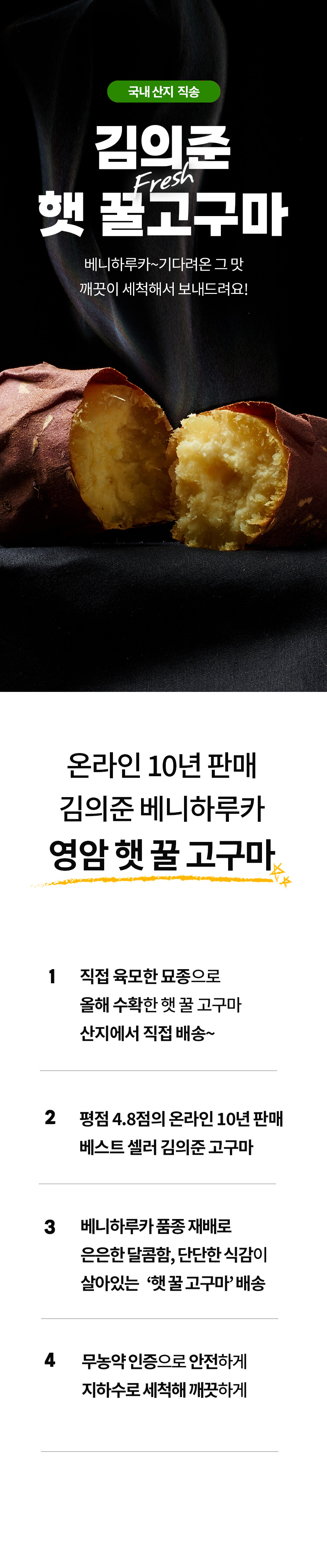 1년 내내 어느 정도 일정 맛 이상의 상태를 유지할 수 있다는 게 김의준고구마의 최대 장점이자 특징이다.