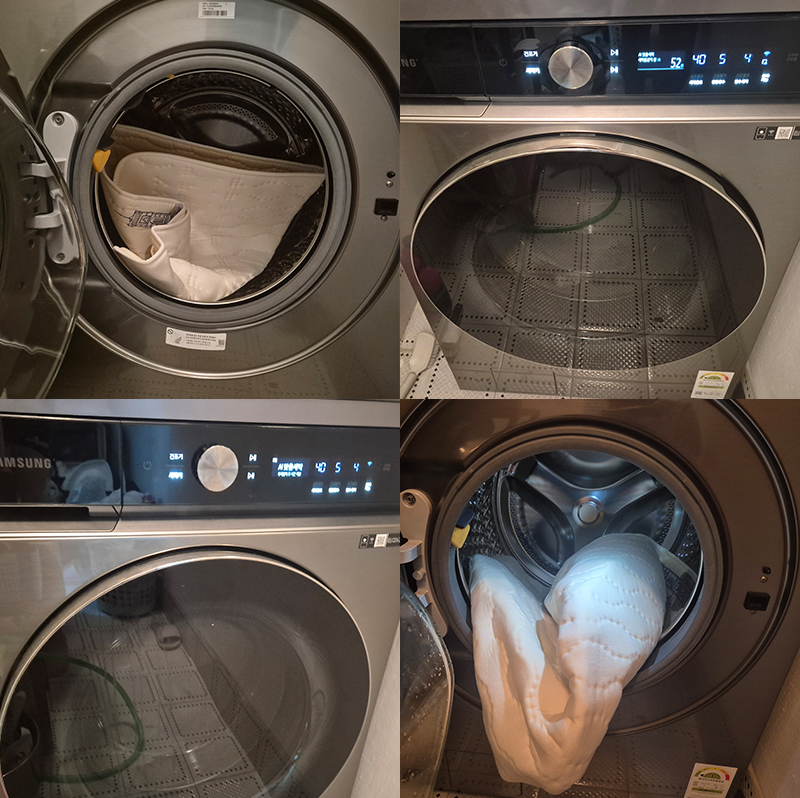 게다가 세탁(드럼 세탁기) 가능하다. (※건조기 사용은 불가, 통돌이 세탁기 사용 불가)