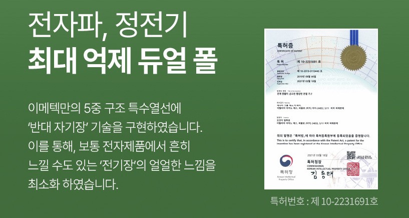 이건 전자파와 정전기를 최대한 억제하는 이메텍의 특허 기술이다.