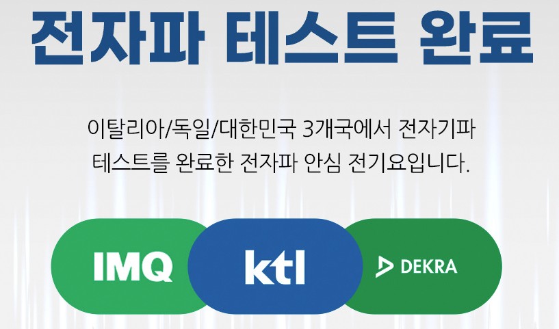 이메텍은 누전 시 자동 전원 차단, 과전류 및 과열 감지, 안전시스템 등 안전 기준을 모두 통과했다.