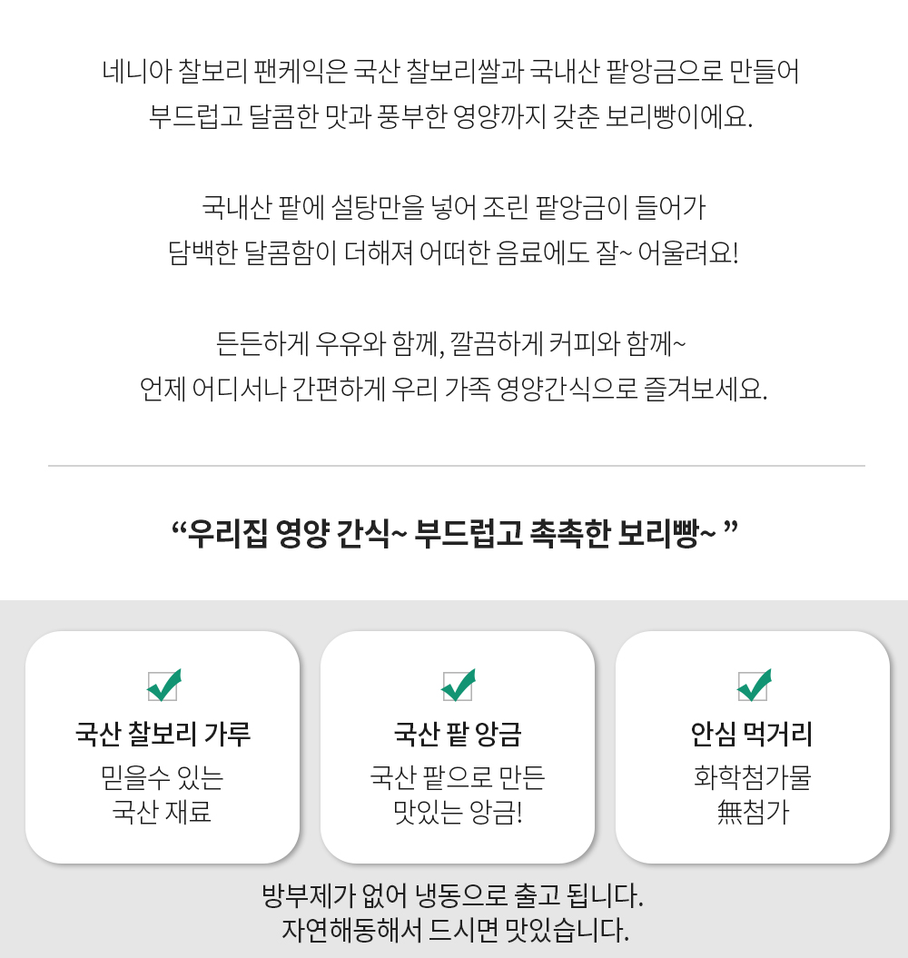 국내산 찰보리 가루와 국내산 팥 앙금을 넣은 찰보리 팬케익은 간식으로...