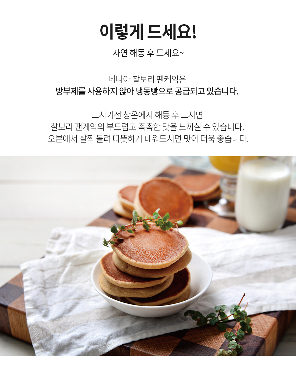 자연해동해서 촉촉하게 먹거나 시간적 여유가 있는 분은 에어 프라이기에 돌려 겉바속촉으로 즐길 수 있다. 또 요즘은 얼먹(얼린 상태에서 먹는)이 트렌드 아니던가. 여름철엔 아이스크림처럼 시원하게 얼먹으로 먹는 것도 추천한다. 추가로 네니아 바닐라 아이스크림 한 스쿱을 올리면 금상첨화!
