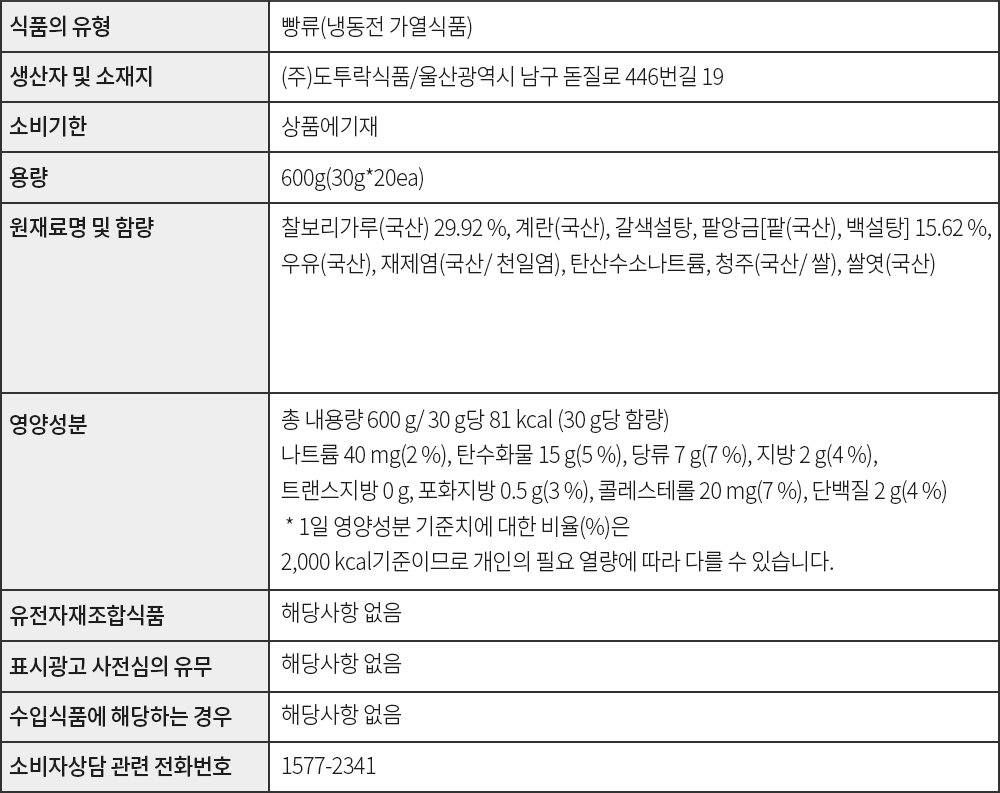 설탕만으로 단맛을 내지 않고 국내산 쌀엿을 추가해 단맛의 깊이를 더했다. 순간적으로 당이 떨어질 때 필요한 달달구리 간식이다. 초콜릿 칩을 제외하고 모두 국내산 재료를 사용했다.