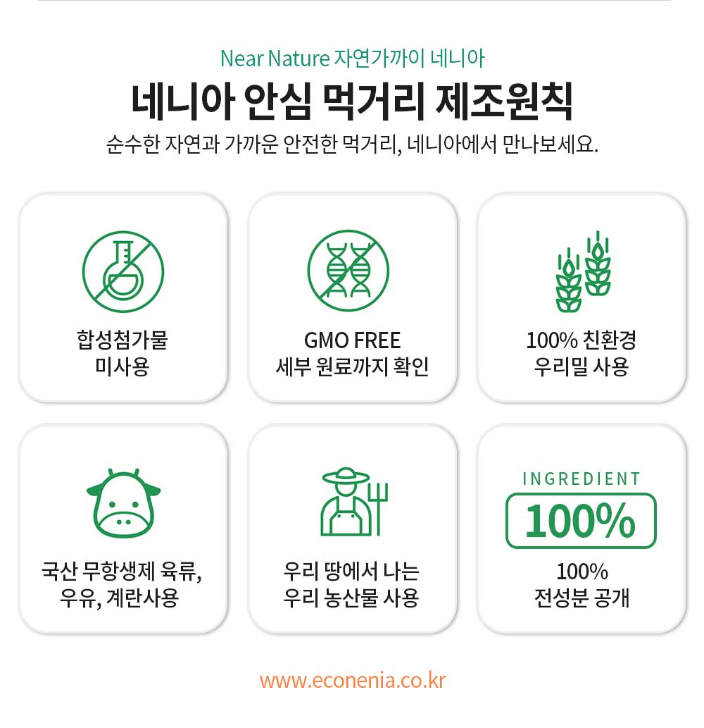 현대인에게 음식은 스트레스를 풀기 위한 수단이 되어가고 있다. 가공을 거치지 않은 농산물은 맛이 없고(無味) 맵고 짜고 달아야 맛을 느낄 수 있는 상황까지 왔다. 그런 분들께 네니아 음식을 드셔보시라 권하고 싶다. 처음엔 심심하다고 느꼈던 음식이 내 입에 맛있다고 느껴지는, 그 순간의 쾌감을 느껴보길 바란다.