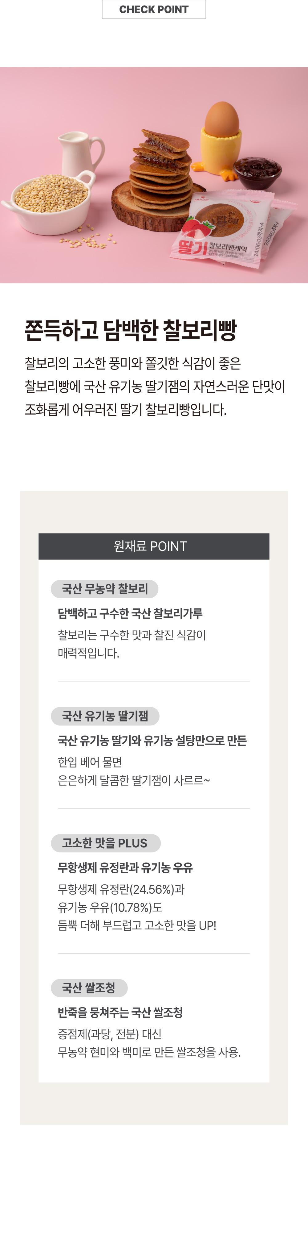 설탕만으로 단맛을 내지 않고 국내산 쌀엿을 추가해 단맛의 깊이를 더했다. 순간적으로 당이 떨어질 때 필요한 달달구리 간식이다. 초콜릿 칩을 제외하고 모두 국내산 재료를 사용했다.