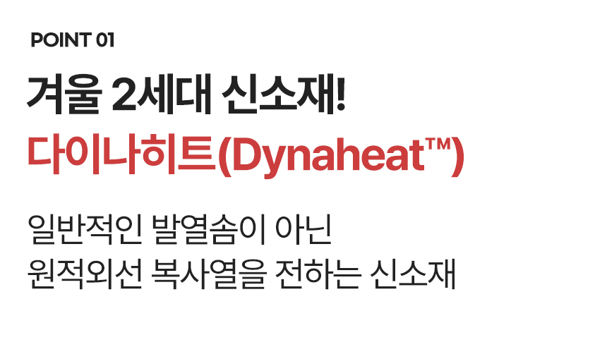 다이나히트는 세라믹 파우더를 결합한 신소재로, 태양광과 체열을 흡수한 뒤 원적외선 형태로 방출한다고 한다.
