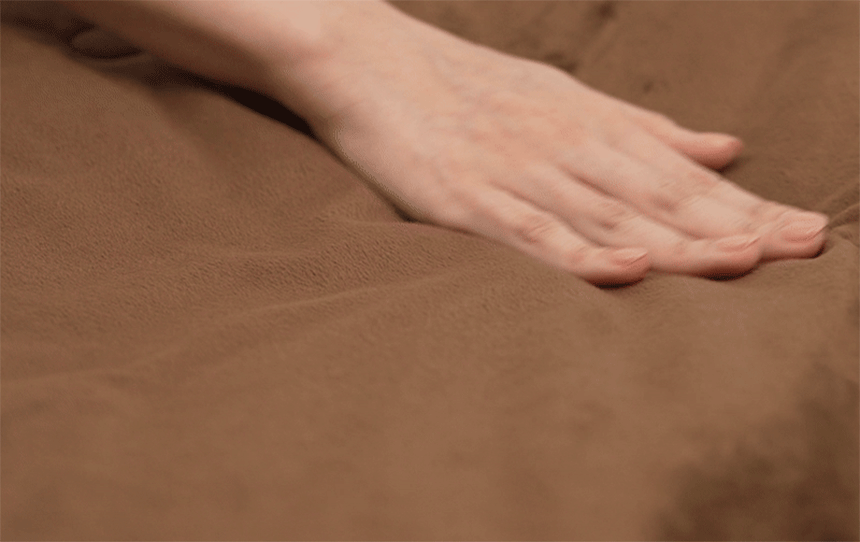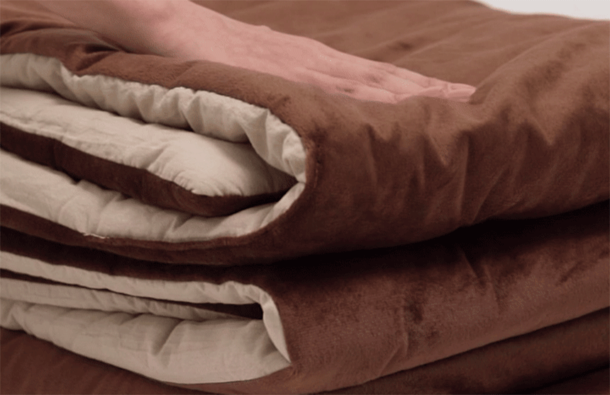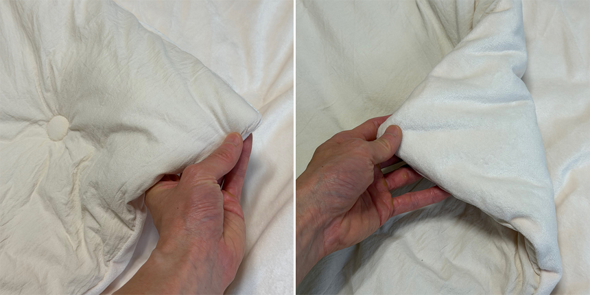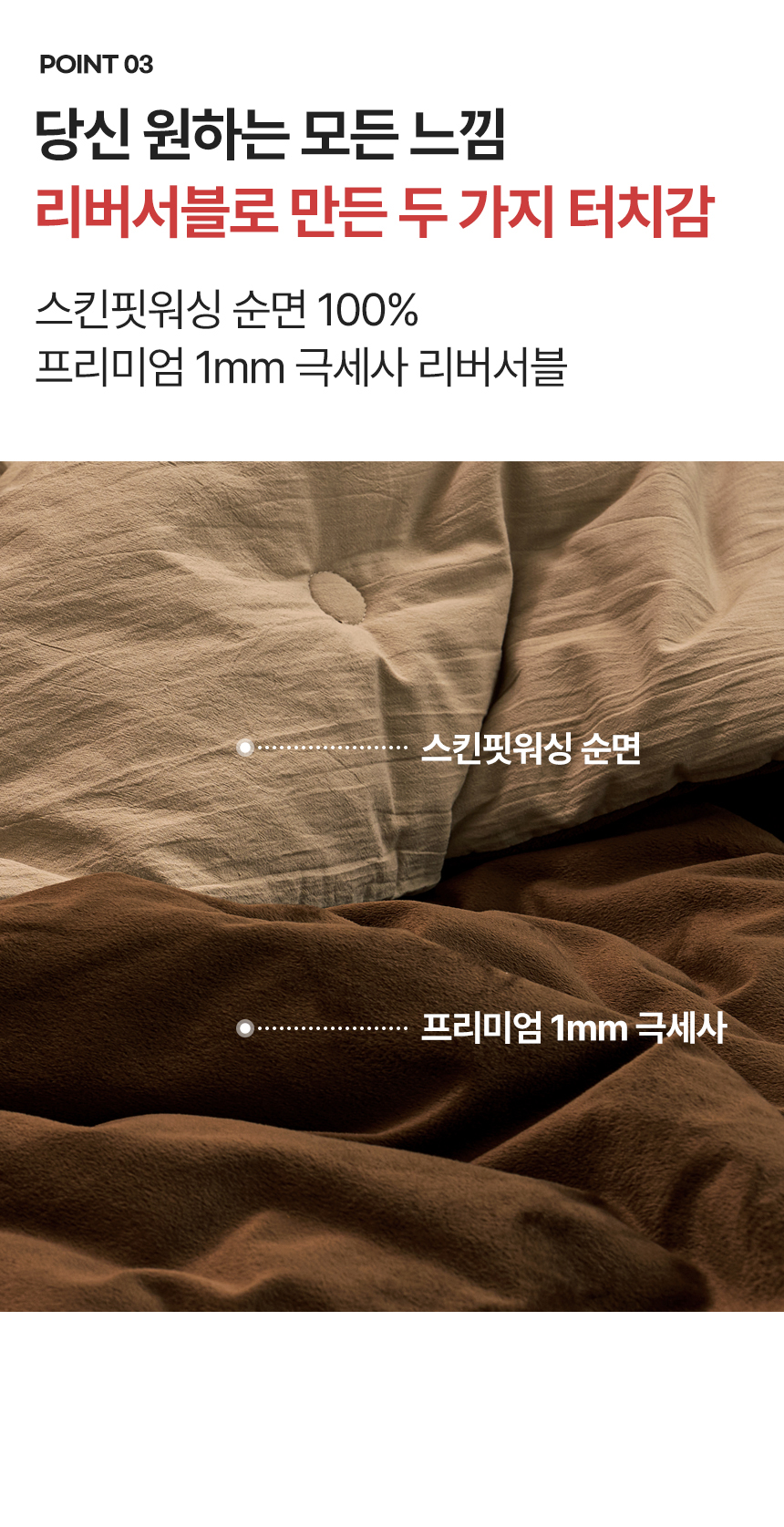 (왼쪽) 순면, (오른쪽) 1mm 극세사 / 양쪽을 다른 소재로 제작하여 온도에 따라 맞춰 사용할 수 있다.