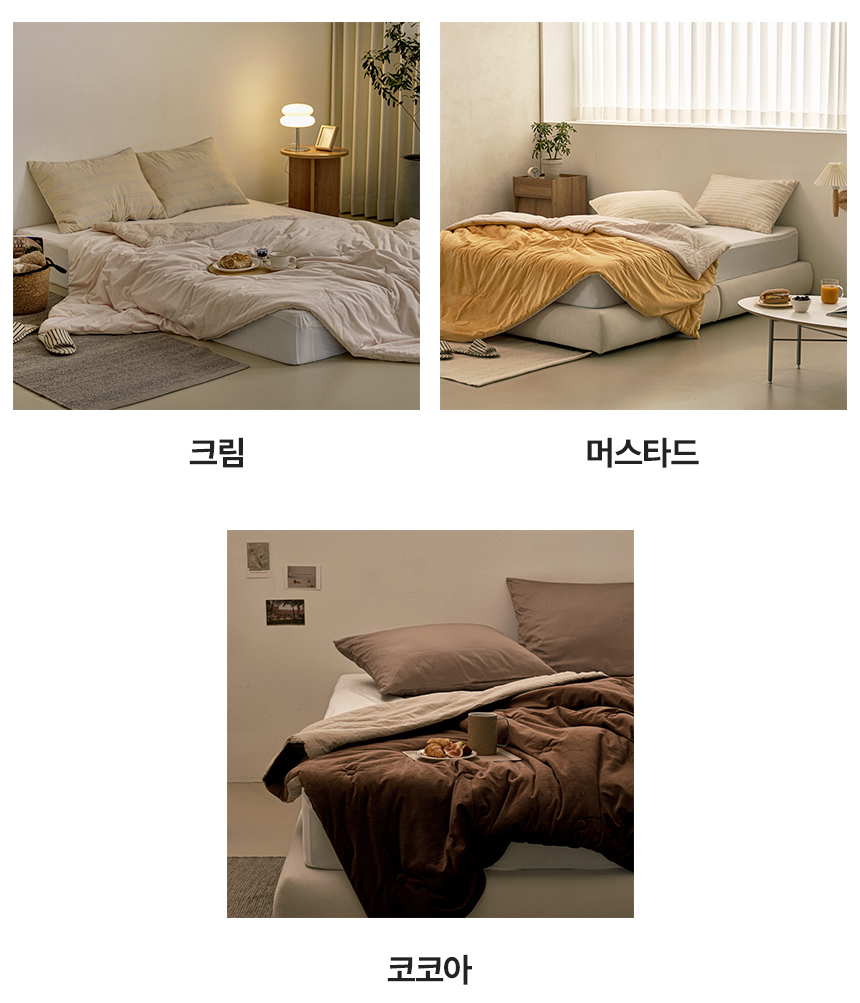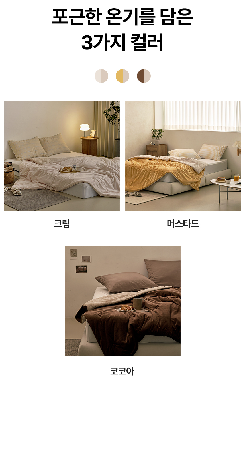 제품 컨셉에 맞는 따스한 3가지 컬러는 방안의 분위기까지 따뜻하게 만들어줄 거다.