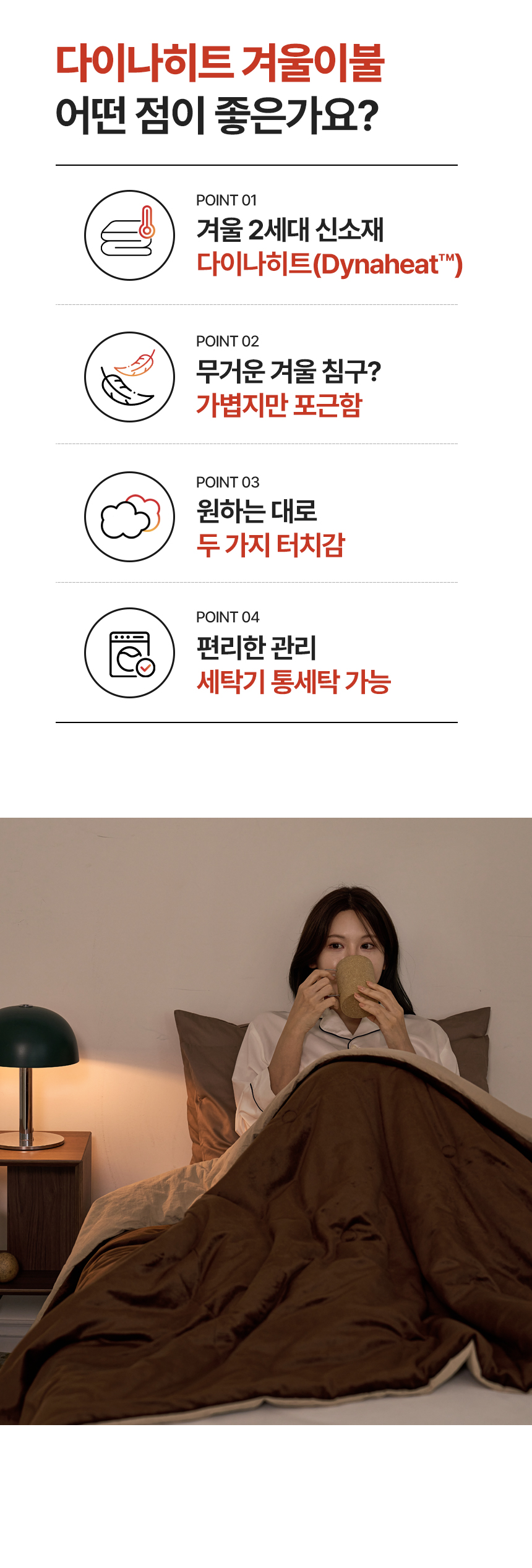 2세대 신소재 다이나히트가 적용된 수면공감 다이나히트 겨울 이불에 주목해 보자.
