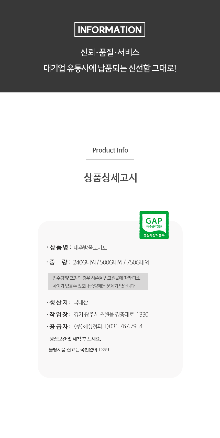 무엇보다도 이 작업장을 직접 찾아가본 이유는 단순히 전국 과수원에서 공급 받는 것을 넘어 GAP 인증 작업장이기 때문이었다.
