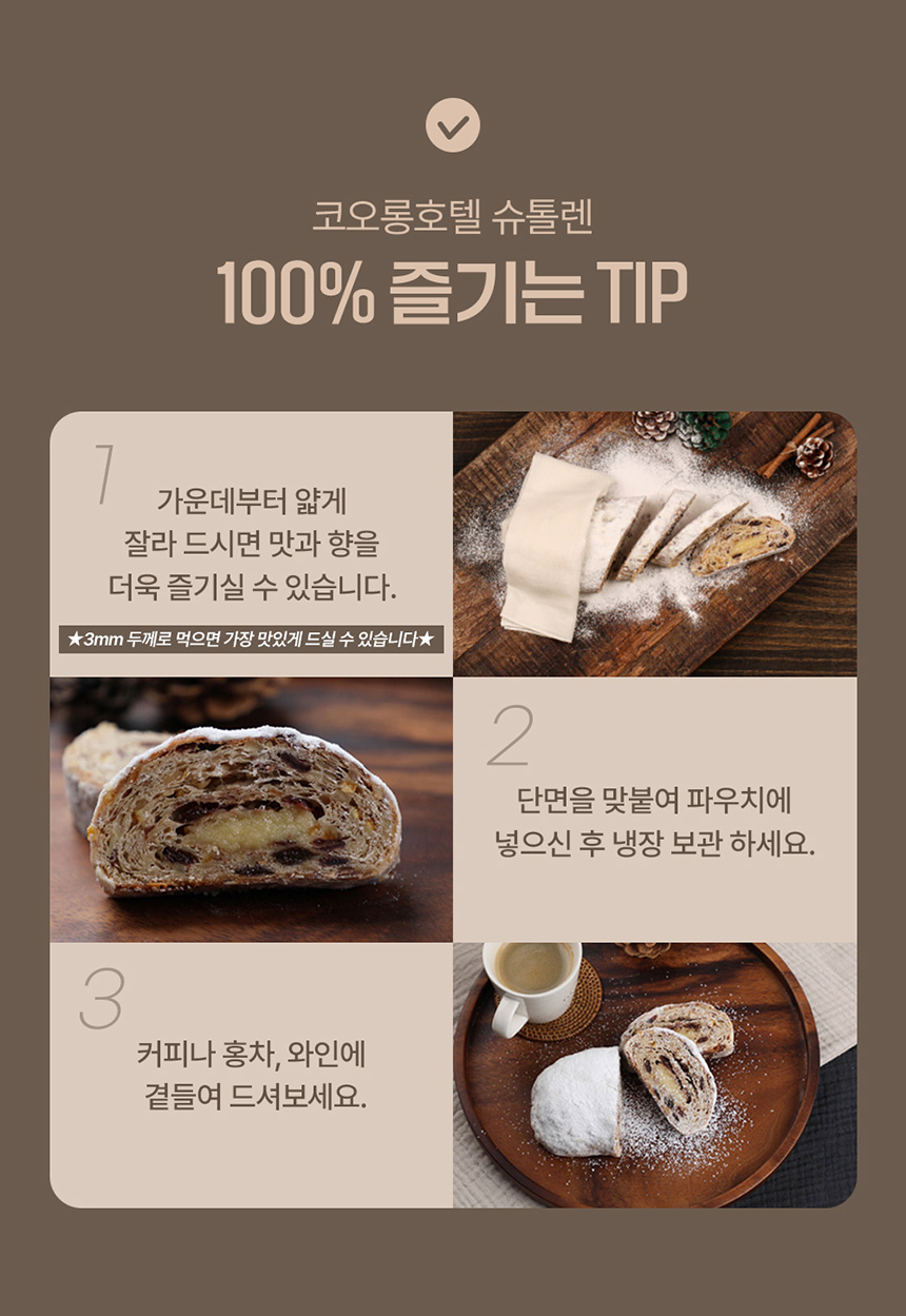 슈톨렌은 지금 당장 먹는 빵이 아니다. 기다림이 있는 빵이다. 며칠, 혹은 몇 주를 두고 조금씩 잘라 먹으며 시간이 만들어내는 작은 변화들을 음미하는 겨울 의식 같은 것.