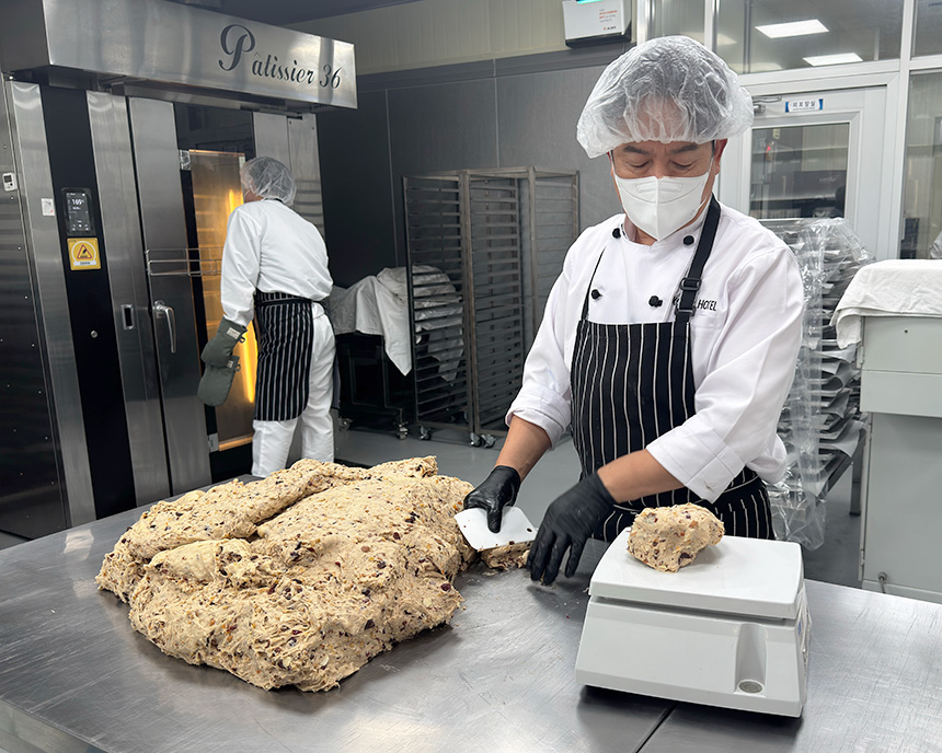 이상기 파티쉐가 슈톨렌 제조 과정을 직접 시연했다.