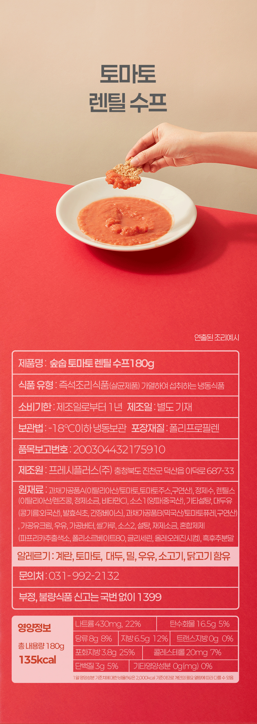 일반적인 수프에 비해 당 함유량이 적어, 저당 제품으로 표기가 가능하며, 실제 제품 시식 시 해당 맛을 유지하며 칼로리가 낮게 만들 수 있는 부분에 대해 많은 연구가 진행된 걸로 확인된다.