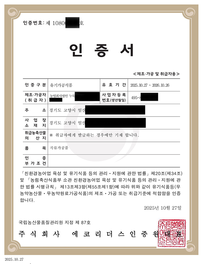 생산에 사용된 누룩은 유기 가공 인증을 받은 누룩으로 재료까지 섬세하게 신경 쓴 부분이 돋보인다.