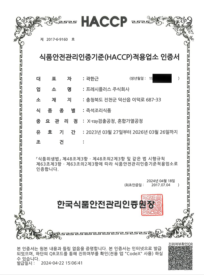 식품 관련 안전 관리인증 기준을 인증해썹(HACCP) 내용을 확인