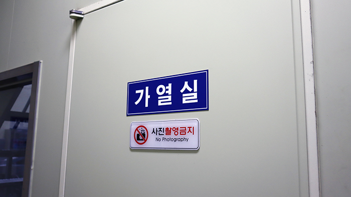 최종 상품화되어 생산된 제품들은 각 상품별 수량별로 알맞은 박스에 포장되어 냉동실로 이동된다.