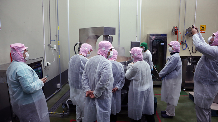 생산 과정에 대해 꼼꼼히 검수하는 프레시플러스 연구원들과, 맛집공장 임직원들