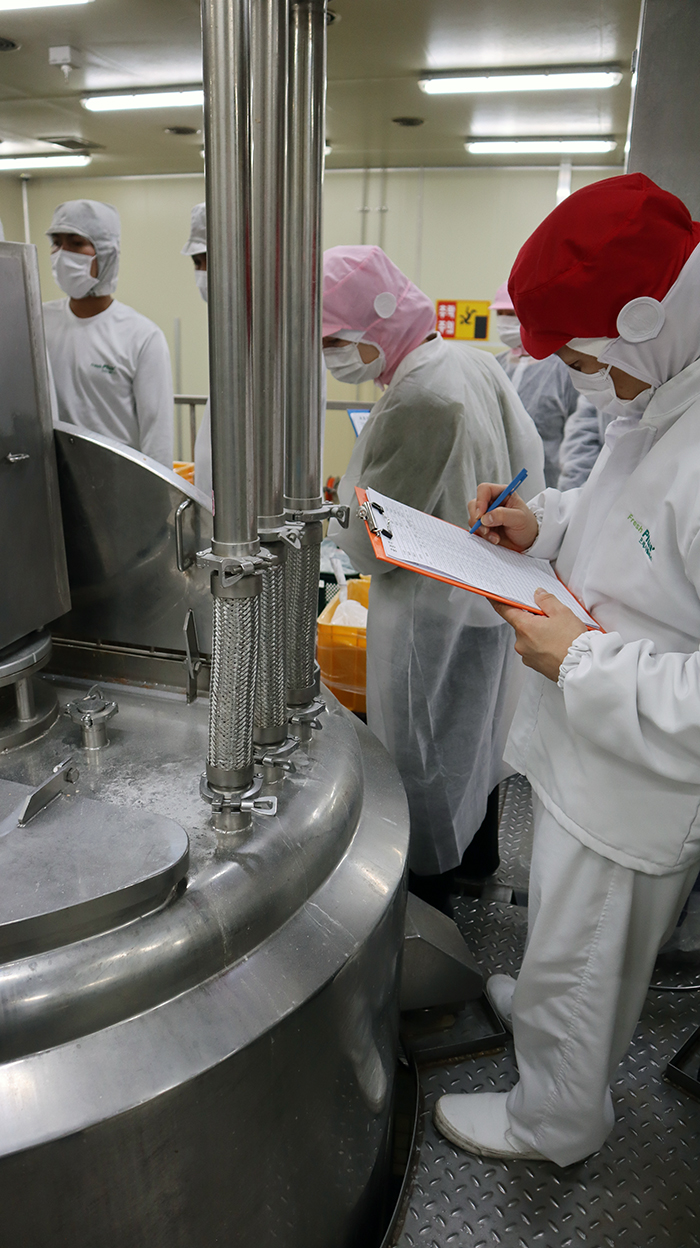 생산이 끝난 후 제품화하기 전 최종 제품 시식 검수가 진행된다.